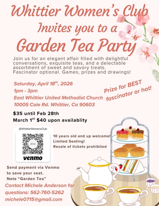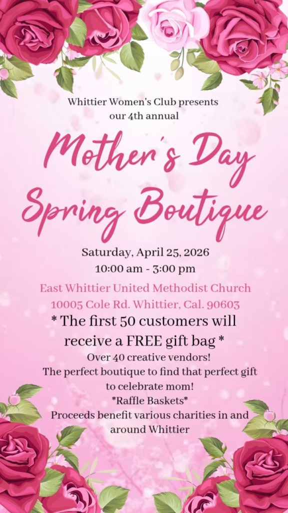 Discover the exciting events hosted by the GFWC Whittier Women’s Club, where community spirit thrives and friendships blossom. Join us in making a difference through our engaging activities and fundraisers that empower women and uplift our community!